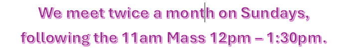 We meet twice a month on Sundays, following the 11am Mass 12pm – 1:30pm.